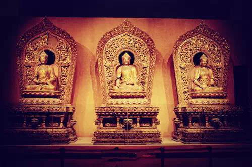 “横三世佛”横三世指的是平行的三个空间,就像我们说的三维空间,从左往右来分别是阿弥陀佛,释迦摩尼佛,药师佛。