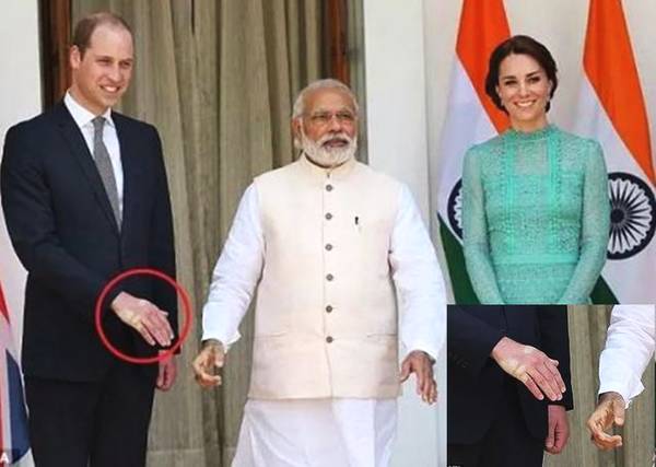 证明莫迪手非常有力量最好的证据就是跟威廉王子的握手了,看看威廉王子的手,都给握出血印来了