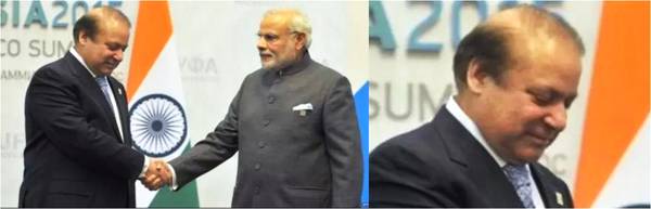 下图是跟巴基斯坦总理握手,握手本来是应该面对面,然后微笑致意嘛,但是总理忍不住看了下自己的手...