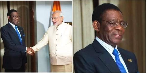 再看看这位黑人总统,从他的眼神中,我看到了真的很疼,好像要哭了一样,大家注意看她们握手时候的姿势,黑人总统已经被握的握不住莫迪了