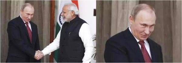 再看普京大帝,普京可是克格勃出身,而且还是柔道高手,跟莫迪握手的时候,莫迪明显加大了力量,不信看他的手是紧紧的握在了一起,普京感觉也在用力,要比一比,不服!!不过莫迪笑了,笑的很自然,感觉莫迪劲大!