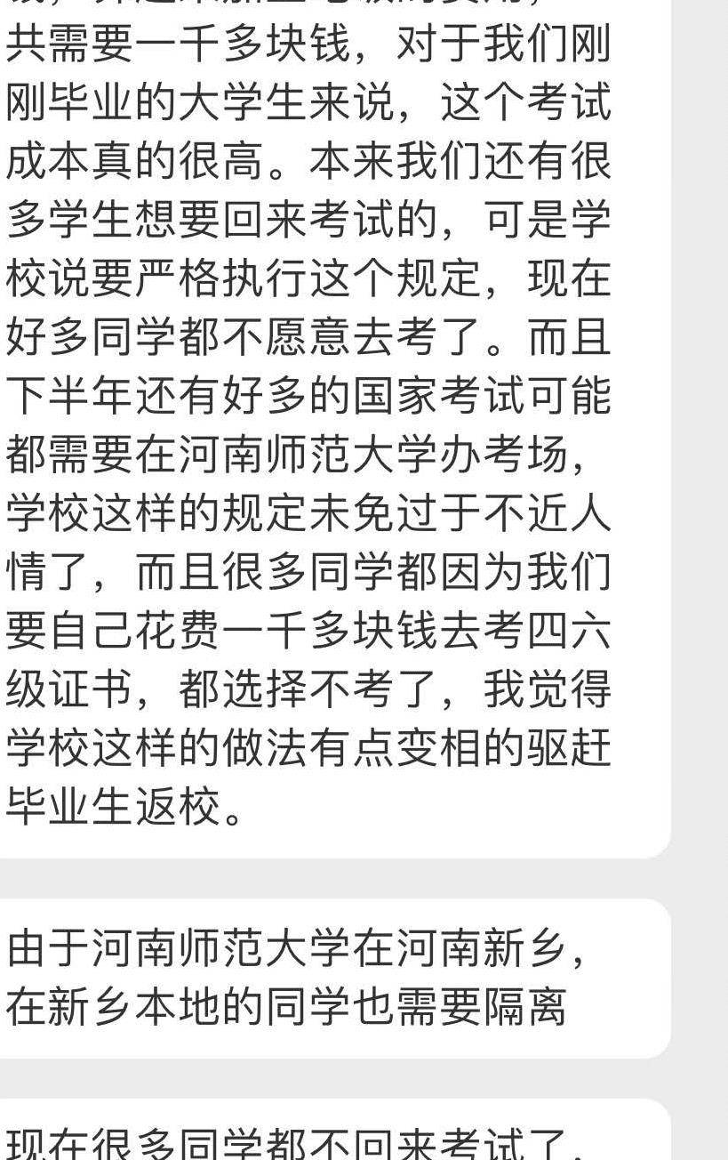 很多学生认为费用过高,而且学校当地的学生也需要隔离,规定太不合理。网友吐槽学校太坑了,考个四六级,隔离就算了,费用还这么贵。