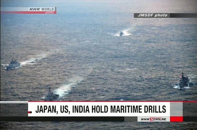 日本NHK电视台11月7日报道称,日本海上自卫队和部署在日本海的美国海军航空母舰以及印度海军举行了联合训练。