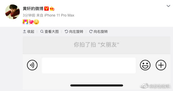 昨天黄轩的女朋友浮出水面,不是娱乐圈的女明星,而是圈外的一个素人,媒体拍下了2个人一起甜蜜的瞬间,两个人一起逛街,期间女朋友还拍了黄轩的屁股一下,在这段资料被公布后,黄轩大方的承认自己的恋情,并配图“拍了拍女朋友”。