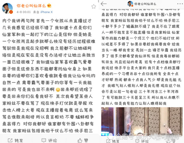 不过自从小仙女扛大旗之后,仙家的状态在逐渐下滑。直播效果不是很好,人气和收入方面也比以前差了很多,因此网络中对于仙家出现了很多质疑的生意呢,为此仙洋还专门发常长文维护小仙女!